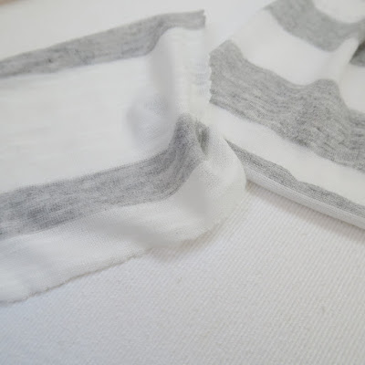 In the end, they sent a few different samples of stripy greys over (Girl Charlee have so many knit fabrics that they actually have multiple varieties of grey stripes!) for me to choose from. Jen liked my original choice, the super sheer stripe on the left hand side, while Mark felt the slightly thicker knit jersey on the right may be more versatile (which led to some merriment over whether I would align myself with the exhibitionist or the prude!). In the end, I requested some of more demure jersey on the right and thought about drafting a habit to wear in the nunnery, while Mark filled me in on an exciting new line of lead fabric sheets they're soon to be releasing due to customer demand - apparently they're not overly drapey and require a welding torch and hammer rather than needle and thread, but they do cover all modesty! For colourways, they're anticipating stocking grey, dull grey, anthracite and original lead. But in reality, while my final choice is definitely comparatively less sheer, it's still actually an incredibly fine fabric!